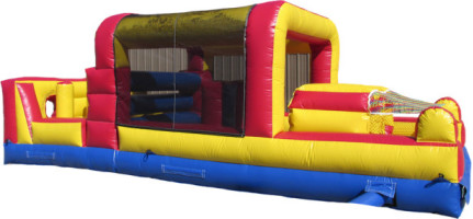 This Space Walk obstacle course is small enough for almost any backyard at 32 feet and is designed to be a two-person competition. Ask your representative how to add the Rock Climb Slide to the end for 65 feet of breathtaking fun.